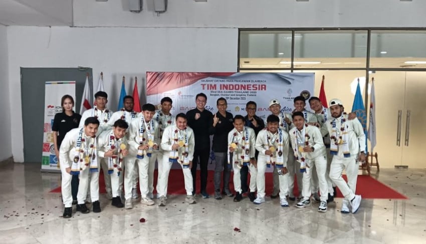 Bawa Pulang Medali Emas, Timnasional Futsal Putra Dapat Sambutan Bak Pahlawan Ke Tanah Air. Foto: SINDOnews/MPI/Andri Bagus Syaeful