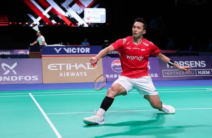 Tunggal putra Jonatan Christie menjadi sorotan Sesudah gagal menyumbang Nilai Hingga partai pembuka. Ia takluk dua gim langsung Didalam Christo Popov Didalam skor 19-21 dan 14-21.