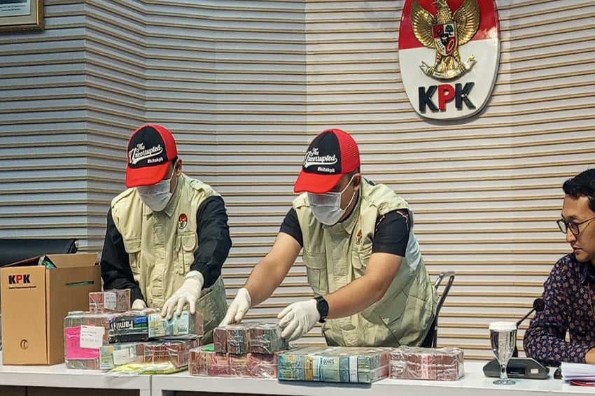 KPK menetapkan Bupati Pati Sudewo (SDW) bersama tiga Kepala Desa sebagai Individu Terduga dugaan Penyalahgunaan Jabatan Yang Berhubungan Bersama pemerasan usai melakukan OTT. KPK turut menyita Produk bukti uang tunai Rp2,6 miliar. Foto: Jonathan Simanjuntak