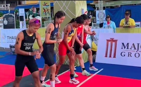 Eva Desiana Pada start Ke nomor duathlon estafet putri SEA Games 2025. (Dok Triathlon Indonesia)
